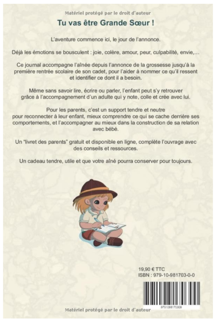 L’arrivée d’un nouveau bébé dans la famille est un moment bouleversant… pour tout le monde ! Mais souvent, on oublie vite une fois passée la naissance de bébé que l’aîné vit lui aussi une grande transformation intérieure. C’est exactement pour cela que le livre Le Journal des Grand a été imaginé : pour donner la parole à celui qui devient “Grand frère” ou “Grande sœur”, et l’accompagner avec douceur dans cette nouvelle étape de vie.